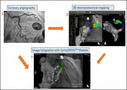 We developed a novel ablation strategy of premature ventricular contractions originating from LVS guided by CARTOUNIVUTM module, which is more efficient and safer [4]. In the study, we reported our experience of VAs originating from LVS region catheter ablation in combination with the CARTOUNIVU™ module in order to integrate the coronary artery angiogram. CARTOUNIVUTM module initially developed by Biosense Webster to reduce X ray exposure could integrate the fluoroscopic images into 3d Electroanatomical Mapping Systems (EAMS) [5].