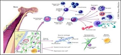 Hematopoietic stem cells: Differentiate into all types of blood cells, including Red Blood Cells (RBC), B lymphocytes, T lymphocytes, neutrophils, basophiles, eosinophil’s, monocytes, natural killer cells, and macrophages.