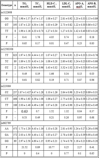 Table 4: Association of SNPs and serum lipid levels in CHD group.